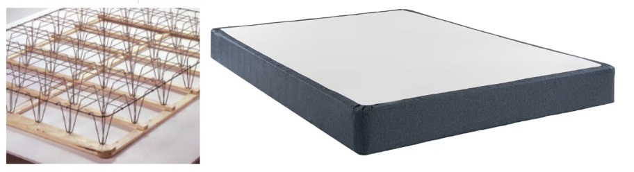 We carry standard wooden box foundations, stronger Serta Perfect Sleeper boxes which are made with a V-tech wire grid, and a premium Posh and Lavish foundation that is rated for our luxury mattresses and heavy sleepers and proven to last longer and eliminate squeaking and wear better for 15 plus years.