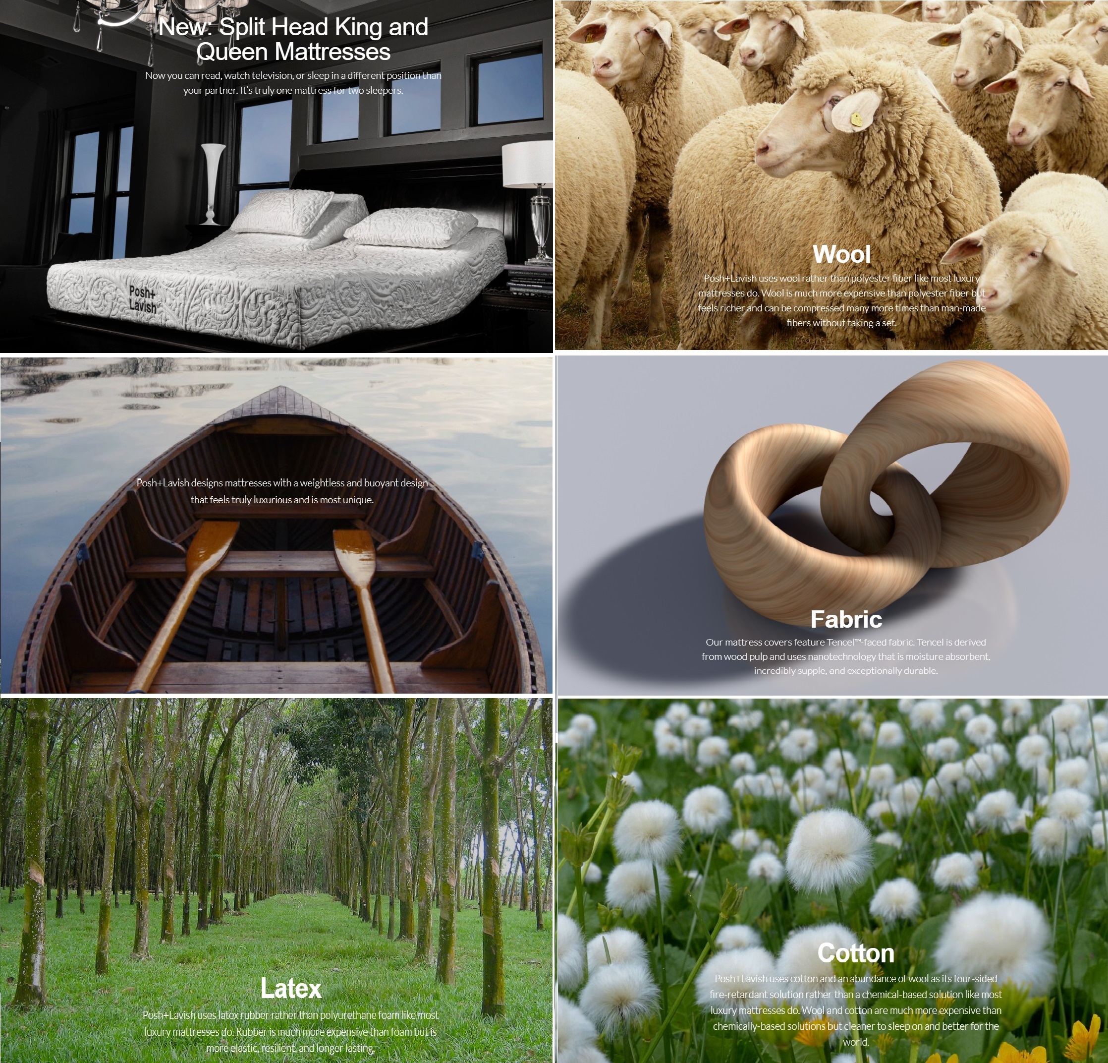 The owner of Posh and Lavish set out to make a better mattress and saw that by spending 10% more per inch of core material (all natural latex) and 5% more for the flame barrier and cover (wool and premium tencel-faced cotton), they could increase the longevity and overall feel and quality of the mattress exponentially. Add to that the fact that those components lead to better muscle relaxation and cooler sleeping temperatures and it just made sense. All of the materials used are 100% Oeko Tec certified to be free of harmful toxins and because the surface and core foams are made from high-grade rubber latex these beds can last upwards of 20-30 years (20 Year Warranty-10 Prorated) with frequent (we recommend monthly) rotations.