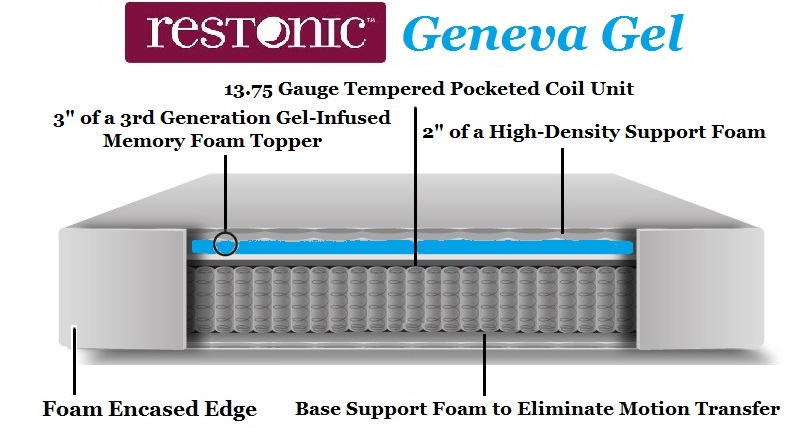The Therapedic Geneva Gel is one of our softest innerspring mattress set yet still offers premium support and conformity. Its patented 13.75 gauge pocketed coil is one of the strongest on the market designed to prevent sags or body impressions from forming in the center of the mattress. A full 3" of a 3rd Generation Gel-Infused Memory Foam keeps sleepers comfortable with balanced air-flow and unparalleled pressure relief. We would recommend this for side or back sleeping adults. The Geneva Gel is backed with a 10 Year Full Non-Prorated warranty which will replace the mattress in 10 years if it has any body impression over 1 1/2".